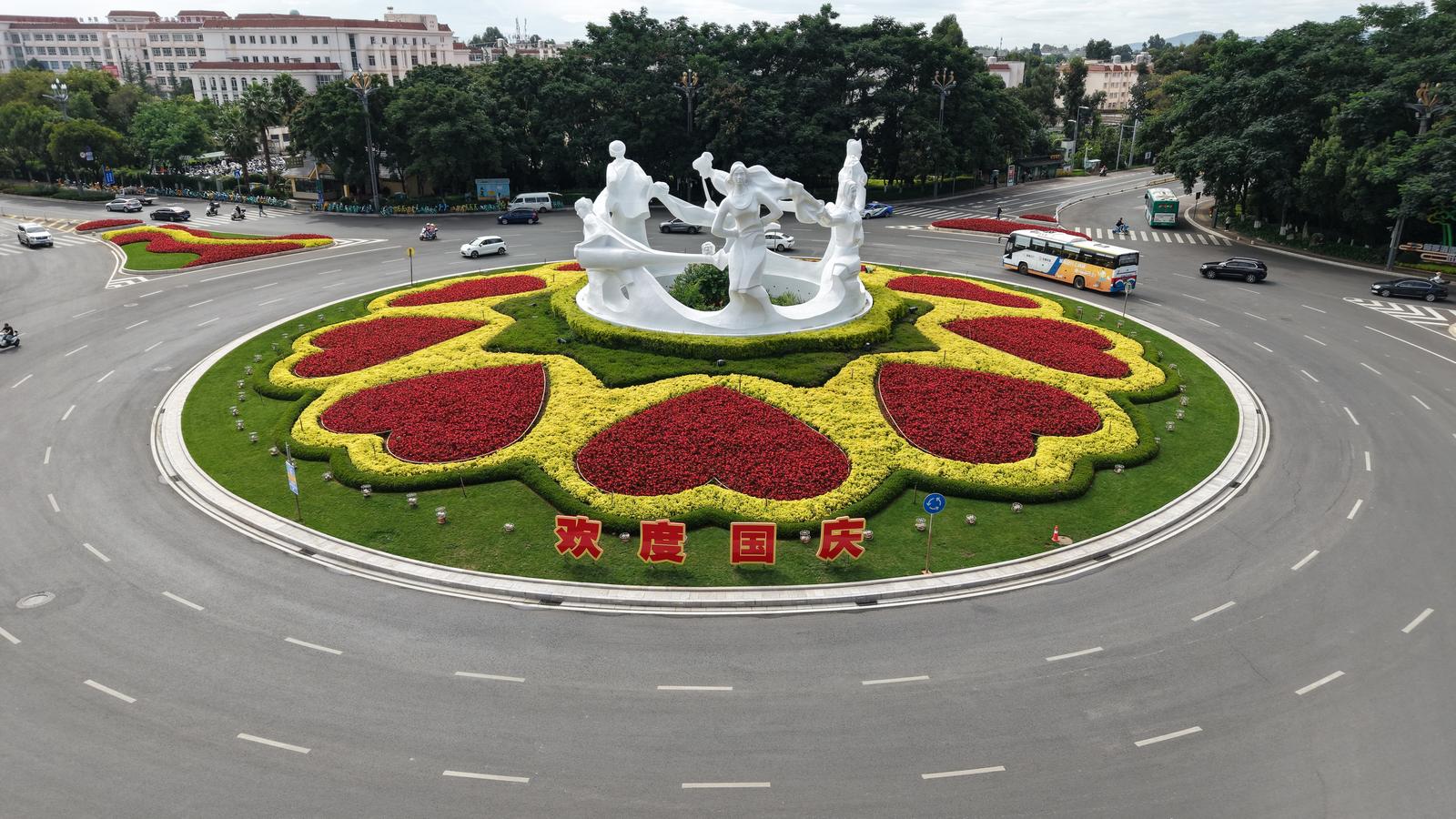2025年国庆、中秋佳节将至,鲜红的国旗已在春城昆明30条重要城市道路及片区猎猎飘扬。从北京路的一串红、比格海棠花廊,到滇池路的孔雀草与天竺葵花毯,金秋时令花卉以大地为卷,泼洒出最浓烈的中国红与最喜庆的节日氛围。