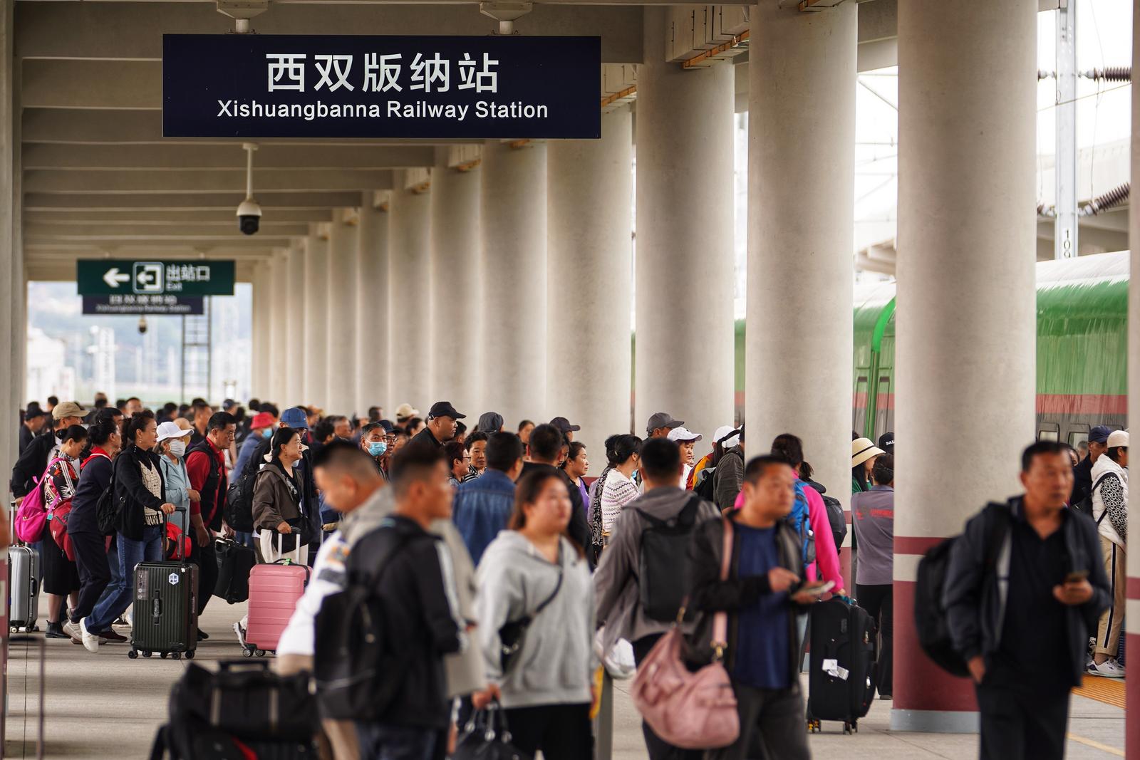 为满足旅客跨境出行需求,铁路部门优化列车开行方案,今年7月18日,再次扩大国际旅客列车开行范围,将普洱至琅勃拉邦国际旅客列车运行区间延伸为昆明至万象,成为第二对昆明至万象国际旅客列车,每趟跨境旅客席位增至420个,每天出入境人数最高达1300多人。同时,开行豪华型“星光·澜湄号”、普惠型“坐着火车游云南”“象往号”等旅游列车,在沿线车站设立国际旅客购票“专门窗口”,在国内段13个客运站开通境外银行卡支付功能和支持多种外籍旅客证件购票,磨憨站提供支取人民币现金服务;完善境外段客票系统功能,拓展互联网售票支付方式,惠及各国旅客。