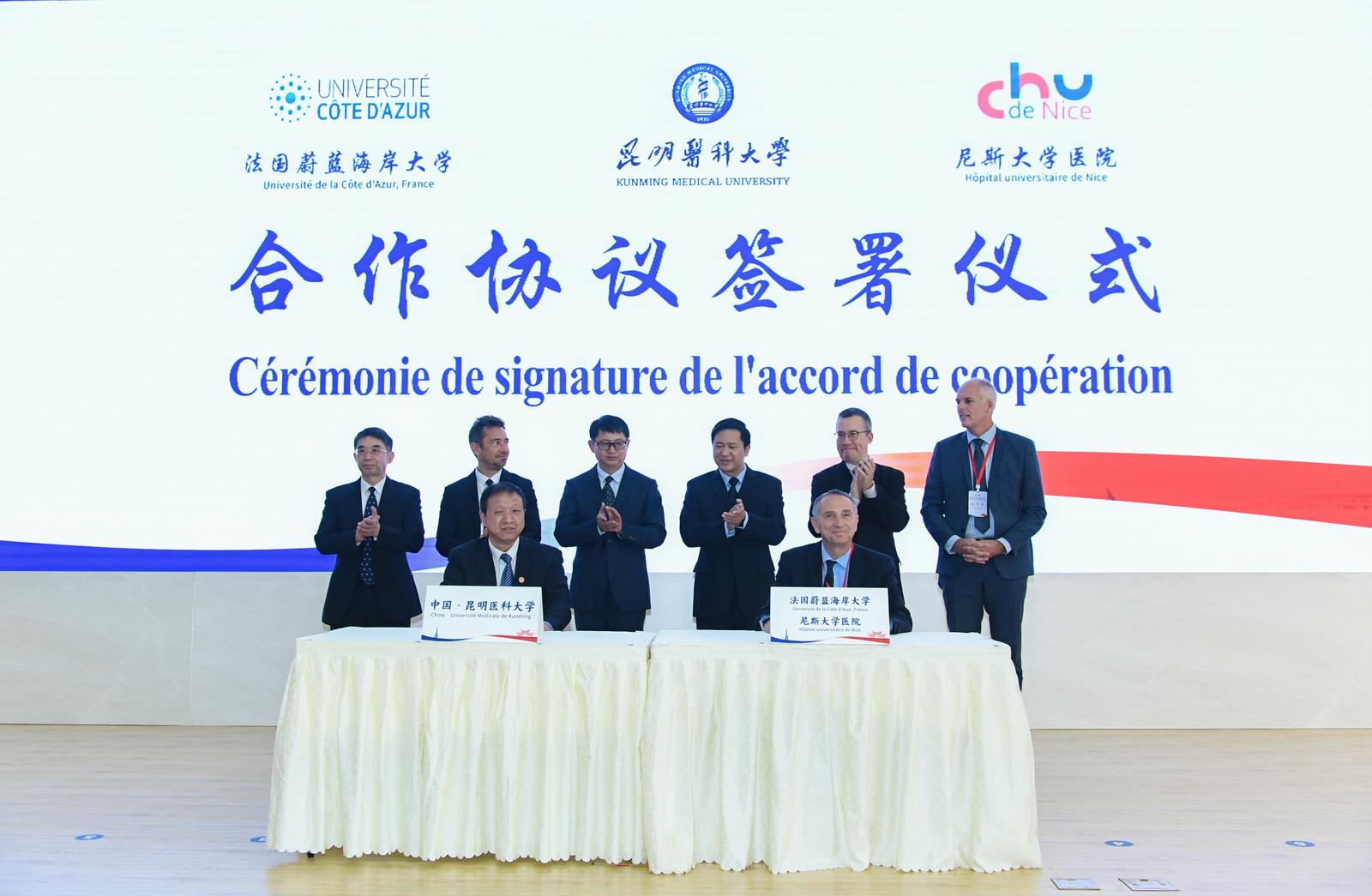 昆明医科大学校长夏雪山教授与法国尼斯大学医院、蔚蓝海岸大学签署了合作协议,双方将围绕科研创新与临床培训,为中法医学教育与医疗技术交流开辟更广阔的实践路径。