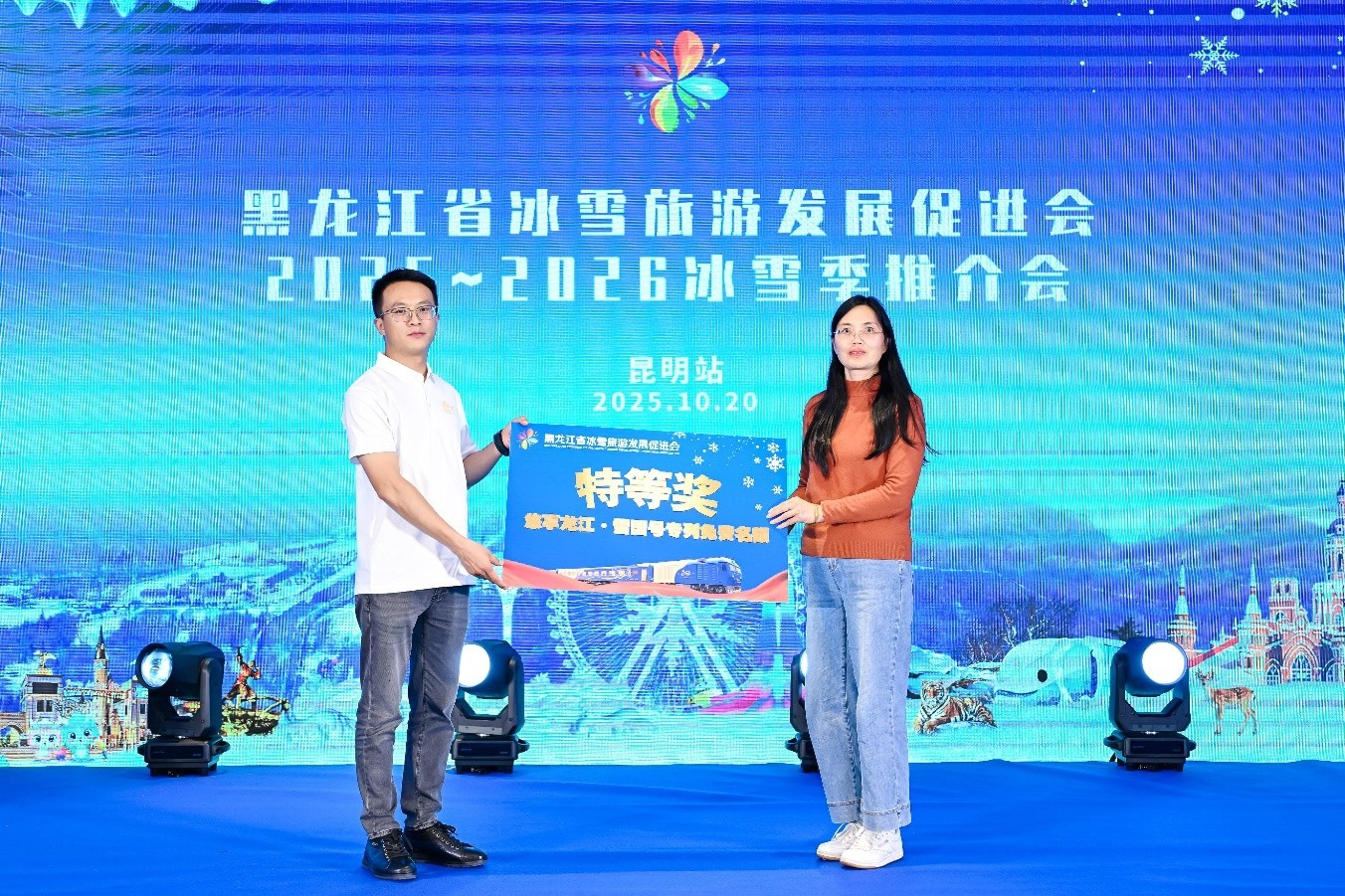 为感谢云南朋友的支持,推介活动还穿插了多轮抽奖,现场送出各种实用好礼。特别奖更是送出了价值5180元的雪国号目的地列车定制游免费名额,让“去黑龙江体验冰雪”成为现场来宾的共同期待。