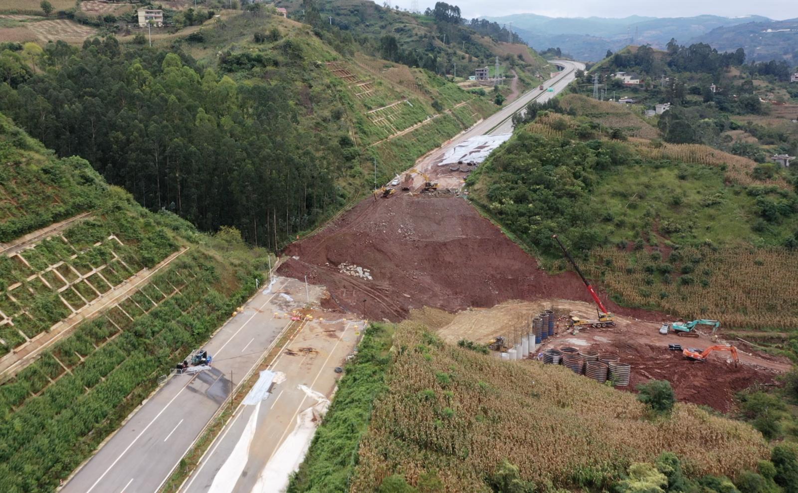 昆倘高速路基塌陷现场探访:道路中断50余天,预计12月底完成抢修