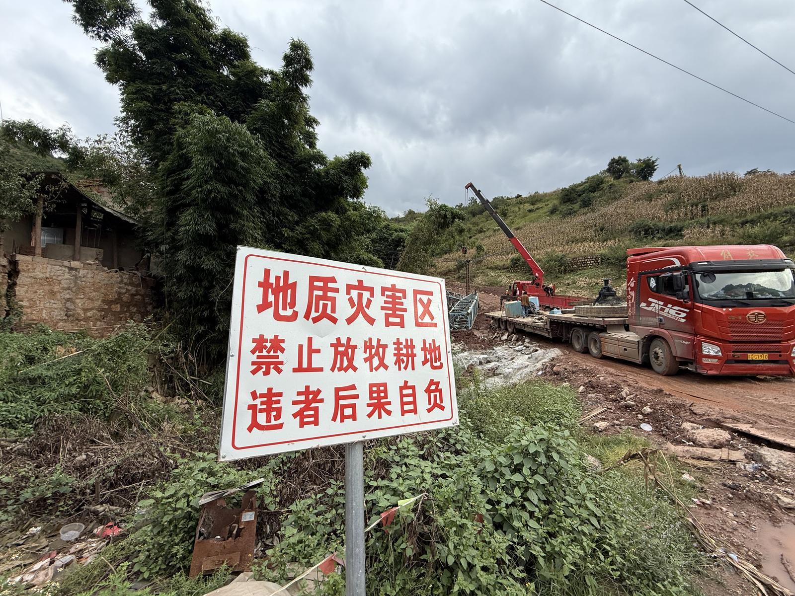 紧邻滑坡处的一户人家是沙营村委会康乐村小组刘文红家,为了方便施工装备进出,施工方临时从他家门前推出了一条土路。为预防次生灾害危险,刘文红一家搬去了施工方为他们租下的花箐村的一处民房,距家500多米。