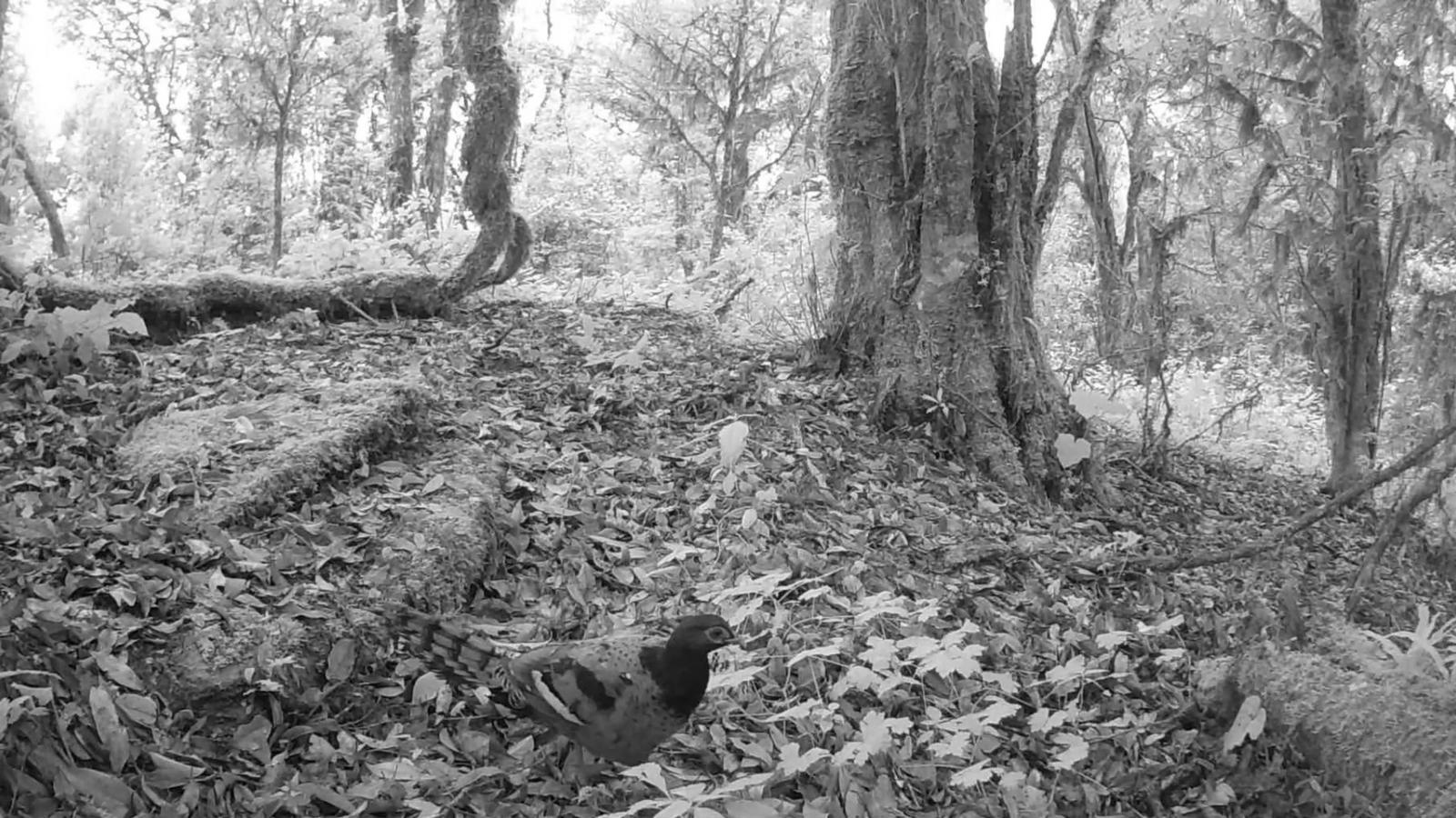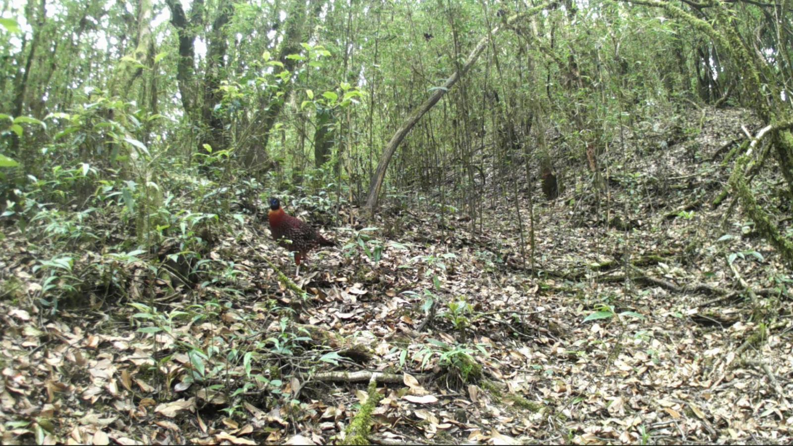 首先出场的是国家一级重点保护野生动物黑颈长尾雉,只见一只雄性黑颈长尾雉拖着标志性的长尾巴从镜头前悠闲地走过,边走边抬头四望,正在寻觅美食。