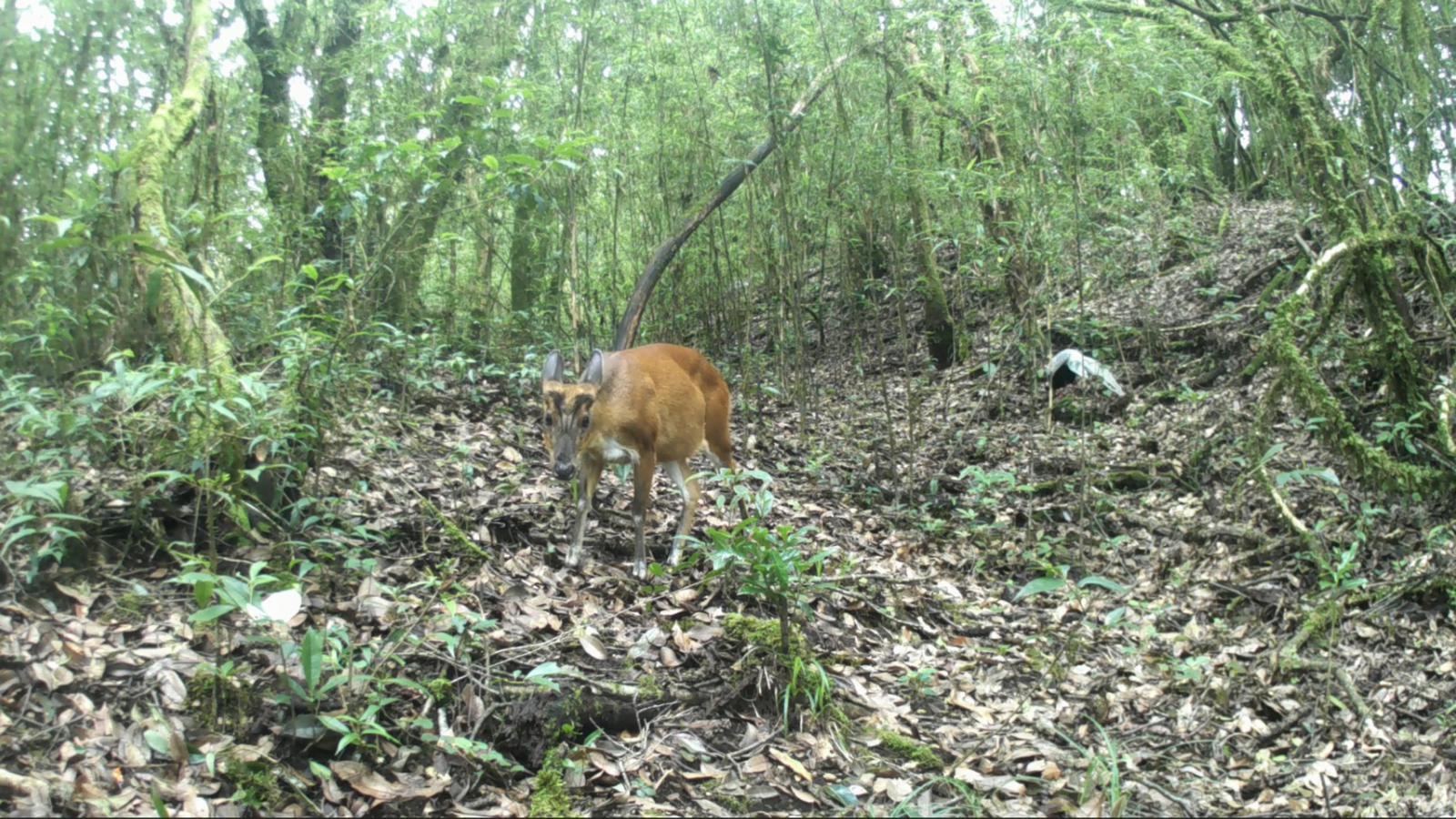 此外,红外相机还拍摄到国家二级保护动物林中仙子白鹇集体觅食的大场面。更为罕见的是,红外相机还捕捉到赤麂和白鹇同框觅食的精彩影像。