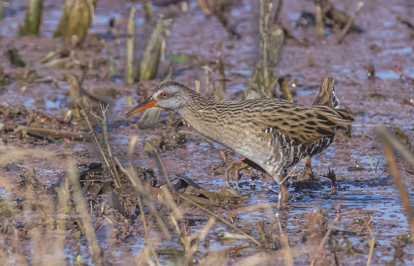 2024年9月在昆明福保湿地发现。普通秧鸡,是鹤形目秧鸡科一种鸟类。普通秧鸡成鸟额、头顶至枕部黑色,带褐色羽缘,头侧石板灰色,贯眼纹黑褐色,眉纹淡灰色;上体羽毛橄榄褐色,带黑色中央条纹,翼和尾黑褐色,翼缘棕白色;下体颏、喉乳白色,下喉、前颈至胸为石板蓝灰色,胁和尾下覆羽黑色,带白横斑;虹膜红褐色,喙橘红色,非繁殖期喙峰角褐色,脚肉褐色。普通秧鸡分布于欧亚大陆和非洲,在中国繁殖于北方多地,越冬于东南至西南地区。普通秧鸡栖息于开阔平原至低山丘陵的湿地或稻田。性隐秘,常单独或成小群活动于滨水草丛中,晨昏活跃。善奔跑,亦能游泳和潜水,飞行时两脚垂于体下。夜间和晨昏觅食,主食蠕虫、昆虫、软体动物以及甲壳类和小鱼,兼食植物果实和农作物。普通秧鸡是秧鸡类野外分布最广、数量最多的一种,是主要的狩猎禽之一。