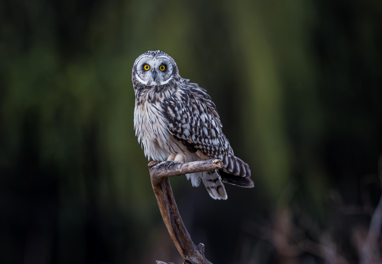 短耳鸮是鸮形目鸱鸮科耳鸮属鸟类,又叫短耳猫头鹰,属于国家二级保护野生动物。短耳鸮在北方部分地区为留鸟,其余地区为冬候鸟,主要栖息于开阔田野,白天亦常见,成群营巢于地面,主要以小鼠、鸟类、昆虫和蛙类为食。短耳鸮分布很广,2023年底成群出现在昆明滇池东大河湿地,2024年2月份在晋宁东大河湿地发现。