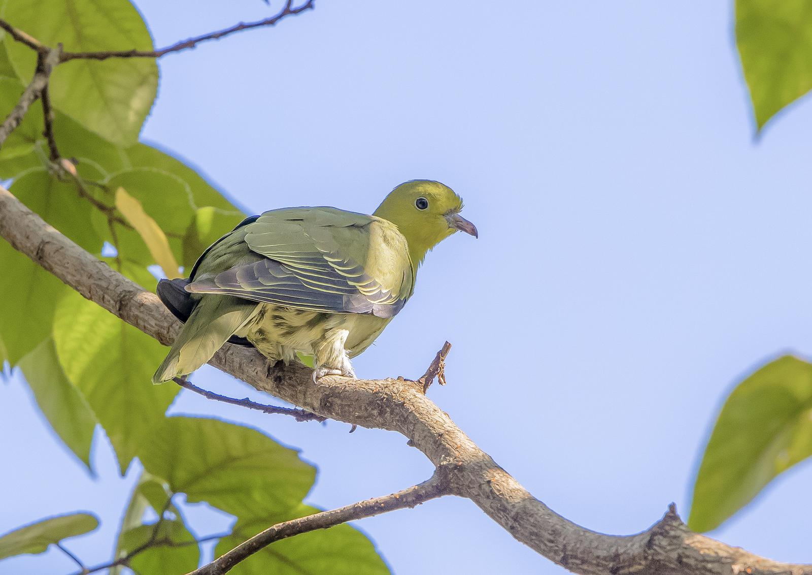 2022年10月在昆明金殿发现。厚嘴绿鸠是一种体型较小的鸟类,体长为25—28厘米,体重170—190克。它的体型与家鸽差不多,嘴短而厚,呈淡黄绿色或铅白色,嘴基的两侧呈珊瑚红色,脚也是珊瑚红色,爪为角褐色。厚嘴绿鸠是留鸟,喜欢栖息于热带和亚热带山地丘陵带阴暗潮湿的原始森林、常绿阔叶林和次生林中,是爱吃树果的鸟类。每年4—9月进行繁殖,每窝通常产2枚白色、光滑的卵。孵化期为14天左右,由雄鸟和雌鸟轮流进行孵卵和育雏。分布于印度和中国的海南、广西、云南等地。
