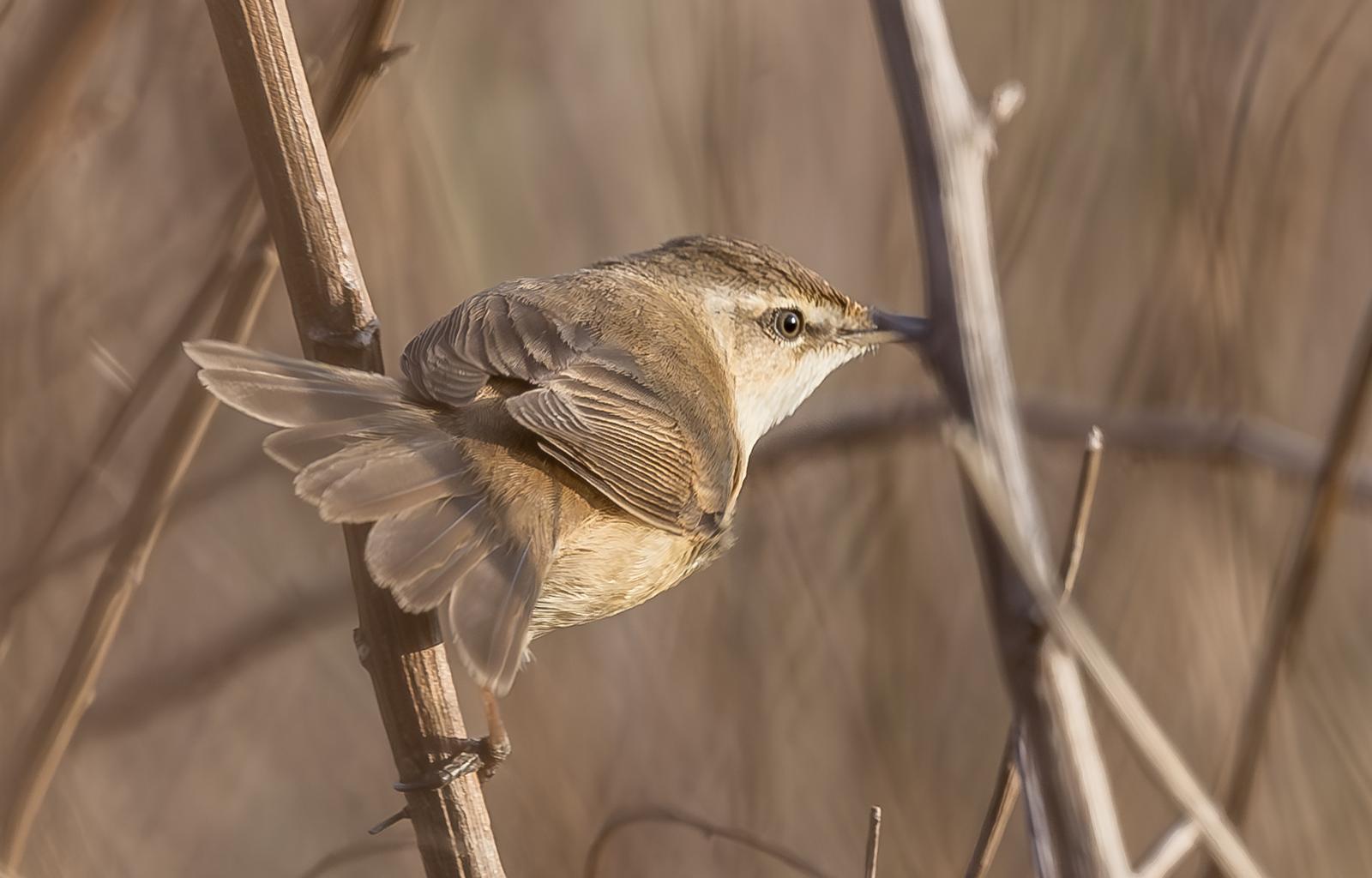 2025年1月在昆明草海湿地发现。稻田苇莺是一种小型鸟类,上体自头部至背、肩部均呈橄榄棕褐色,腰及尾上覆羽转为鲜亮的淡棕褐色,颊部和耳羽棕黄色,眼先和耳羽上缘暗褐色;眉纹宽阔,呈皮黄色甚显著,眉上缘各缀黑褐色的宽阔侧冠纹;尾羽狭窄,羽端尖形;尾羽呈暗棕褐色,表面具不甚显现的暗色横斑纹,羽缘色较浅;飞羽黑褐色,羽缘棕褐色;下体羽在颏、喉部和腹部中央呈纯白色;胸部、两胁和尾下覆羽均呈淡棕黄褐色。虹膜暗灰色;上嘴黑褐色,下嘴黄褐色;脚橄榄绿色。主要栖息于湖泊、水库、池塘、水渠等各种水域岸边灌丛、芦苇丛和草丛中以及芦苇沼泽、柳灌丛和草地。常单独或成对活动。迁徙期亦见成群活动。主要以昆虫及其幼虫为食。分布在中亚和南亚地区,包括俄罗斯南部、伊朗、阿富汗、巴基斯坦、克什米尔、印度等地,越冬于印度、缅甸、伊朗和泰国。
