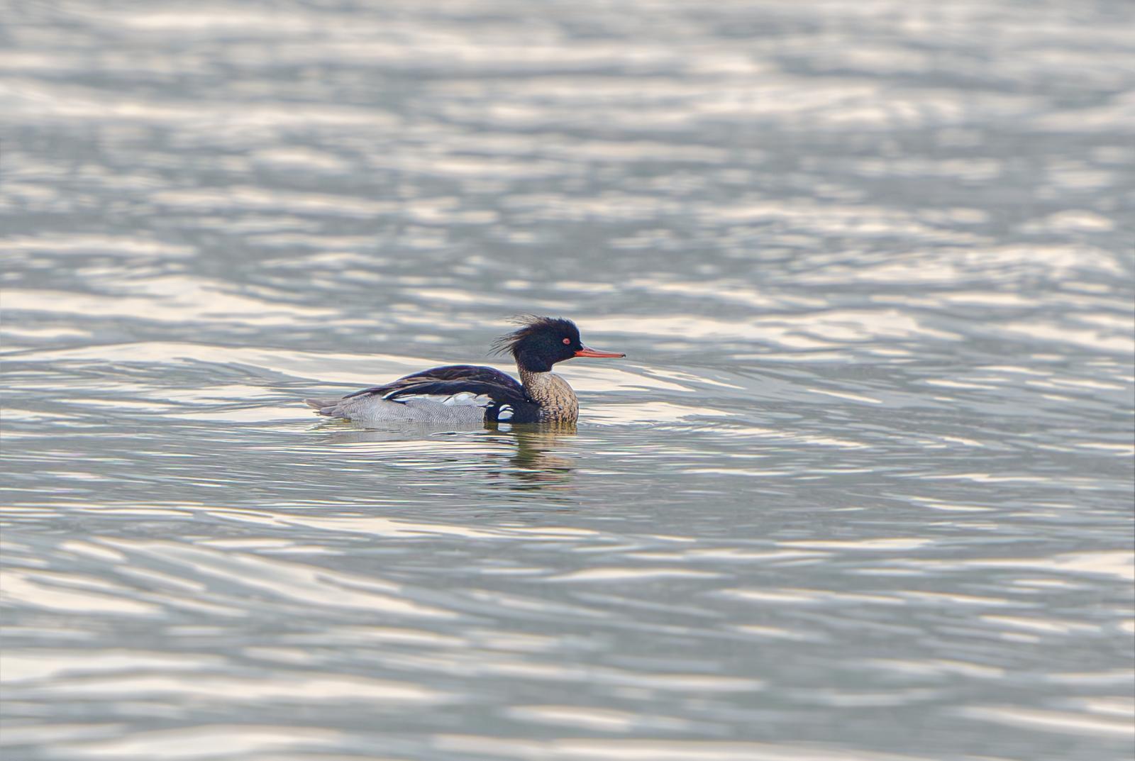 红胸秋沙鸭是雁形目鸭科秋沙鸭属的中等食鱼鸭类,属于国家三有保护鸟类。生活于河流、湖泊、海洋、苔原,常成家族群或小群迁飞,偶尔也见有单只的。主要以小型鱼类、水生昆虫、昆虫幼虫及甲壳类、软体动物等为食,偶尔吃少量植物性食物。2024年1月21日在昆明滇池海埂公园水域被拍到,仅一只,雄性。