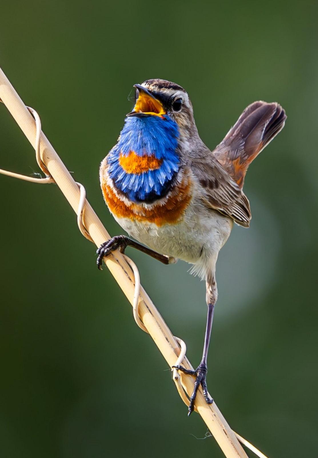 2025年2月在昆明融创湿地发现。蓝点颏,亦称“蓝喉歌鸲”,通称蓝靛颏儿。身体大小和麻雀相似,体长12—13厘米。头部、上体主要为土褐色,眉纹白色,尾羽黑褐色,基部栗红色。颏部、喉部辉蓝色,下面有黑色横纹。下体白色。雌鸟酷似雄鸟,但颏部、喉部为棕白色。嘴黑色,脚肉褐色,声音很好听。栖息于灌丛或芦苇丛中。性情隐怯,常在地下作短距离奔驰,稍停,不时地扭动尾羽或将尾羽展开。主要以昆虫、蠕虫等为食,也吃植物种子等。繁殖期为5月。营巢于灌丛、草丛中的地面上。巢以杂草、根、叶等筑成。每巢产卵4—6枚,卵有光泽呈蓝绿色,孵化期约为14天。分布于中国大部分地区,以及欧洲、非洲北部等地。