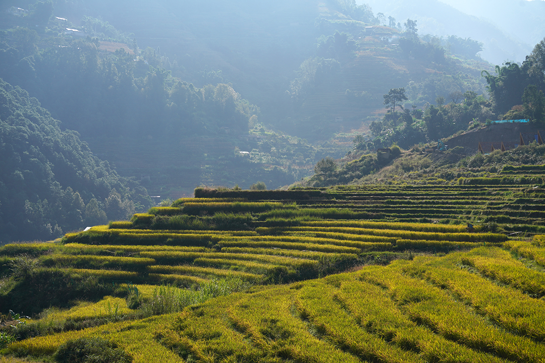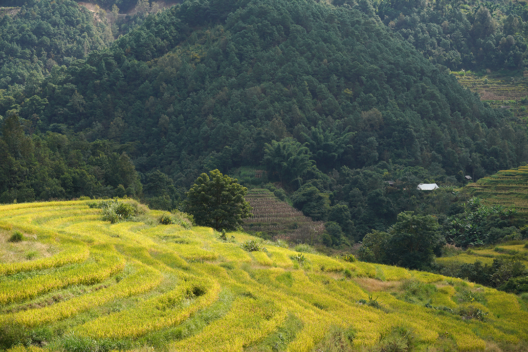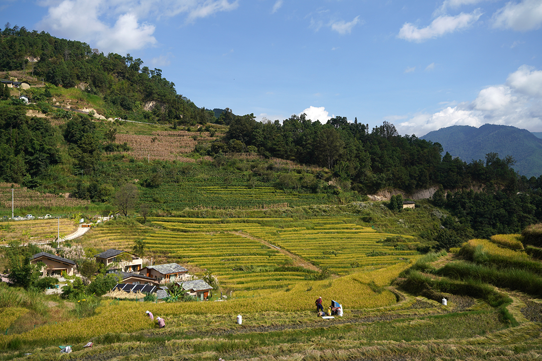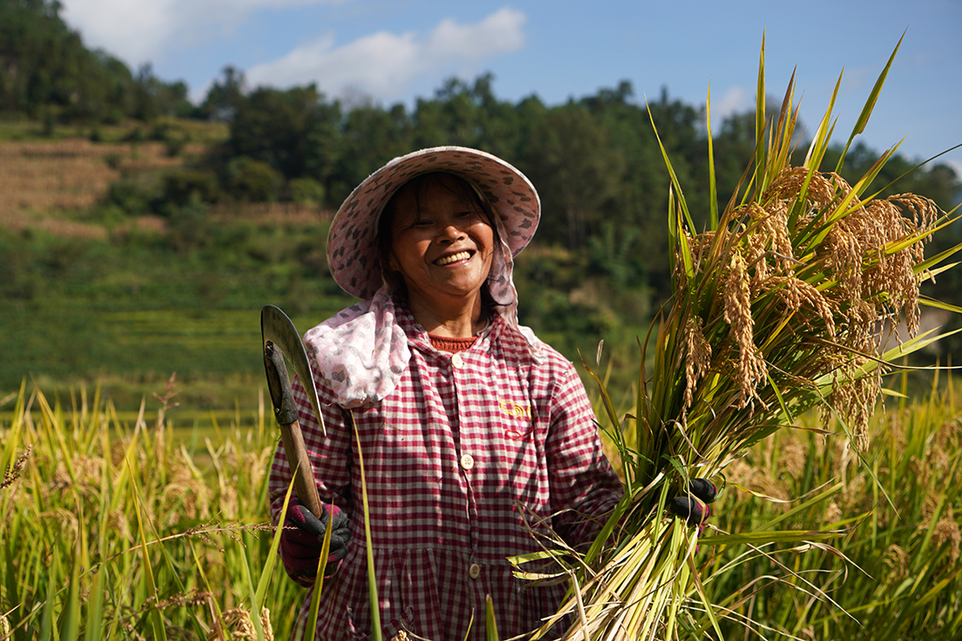 保山昌宁阿背寨:百亩梯田翻金浪,丰收画卷映笑颜