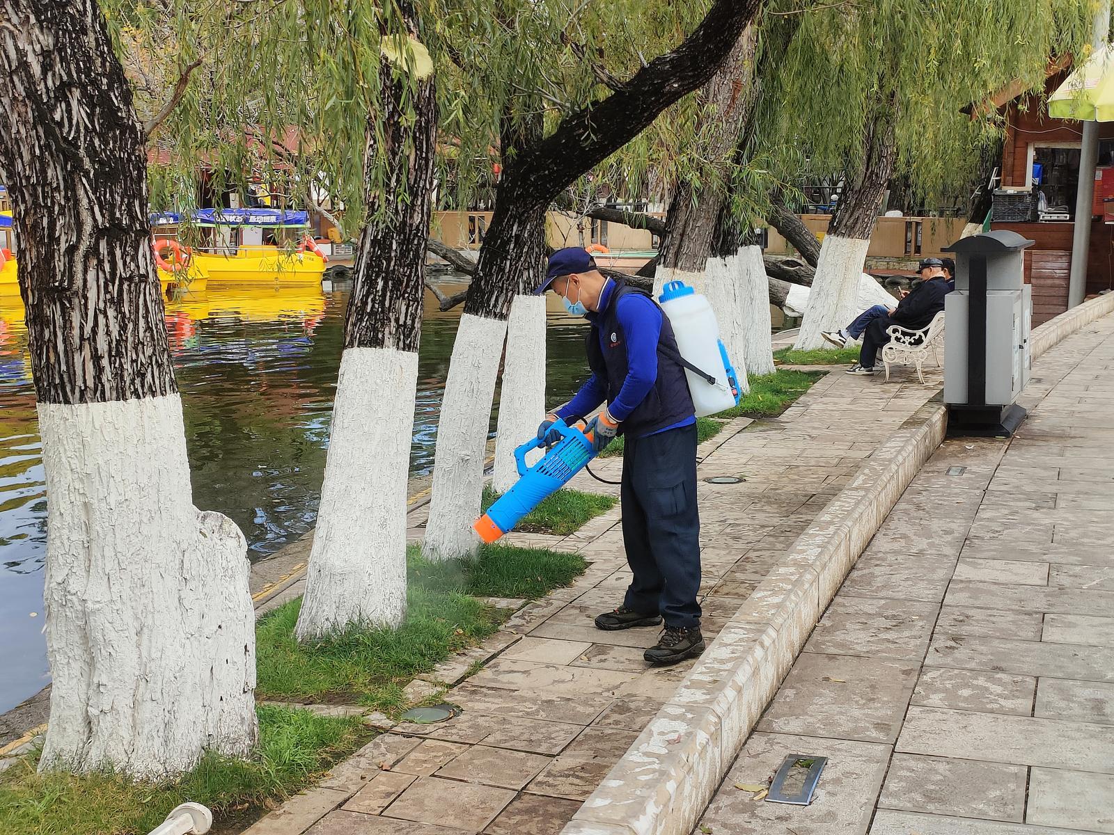 11月6日上午10时,记者在翠湖公园看到,工作人员正进行全方位的消杀作业,范围覆盖地面与水面。这是公园为迎接一年一度红嘴鸥归来所开展的例行工作之一。