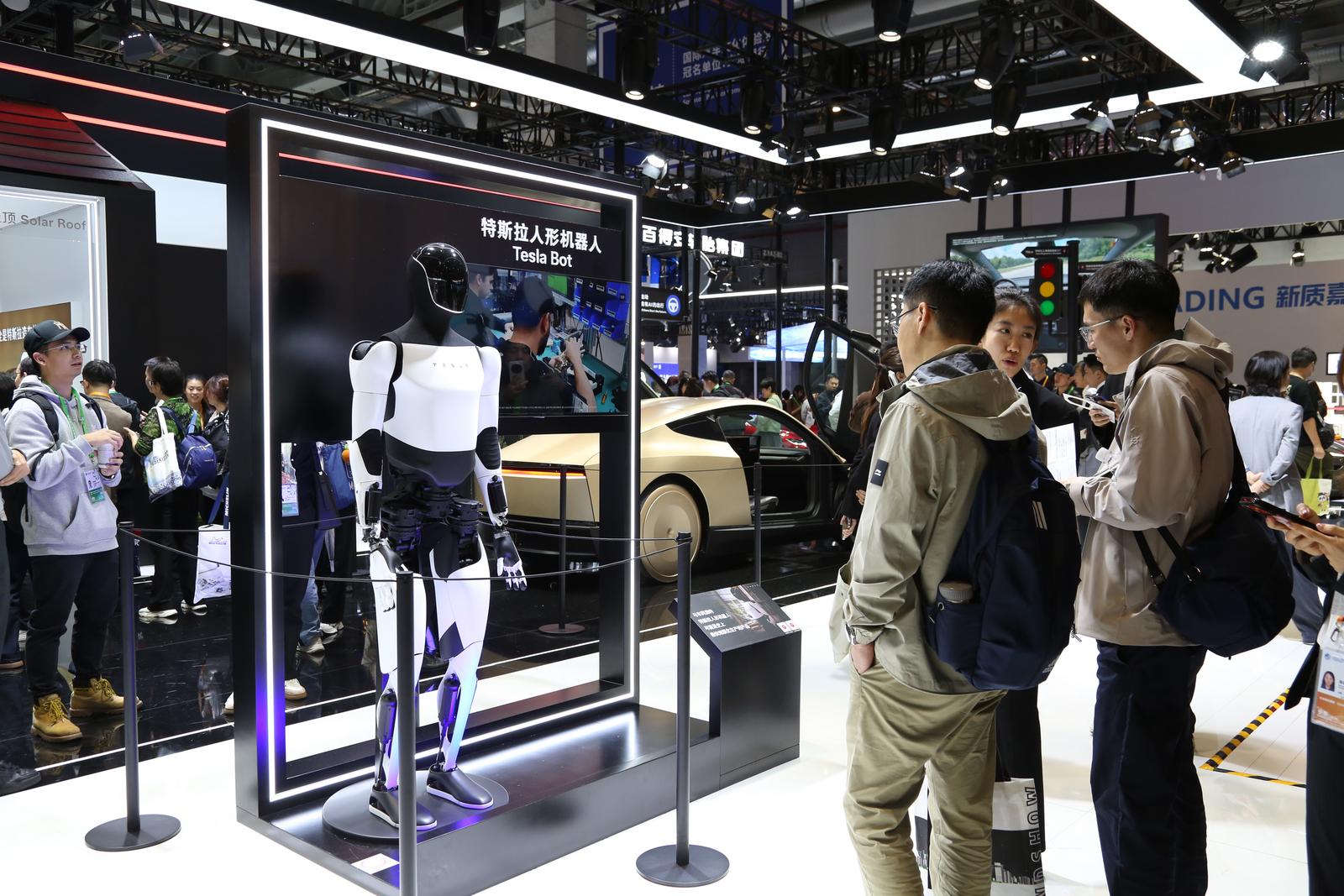 本届进博会上,特斯拉展示了其对现实世界AI的两大主要载体,“地上跑”的无人驾驶汽车和“立起来”走的人形机器人。