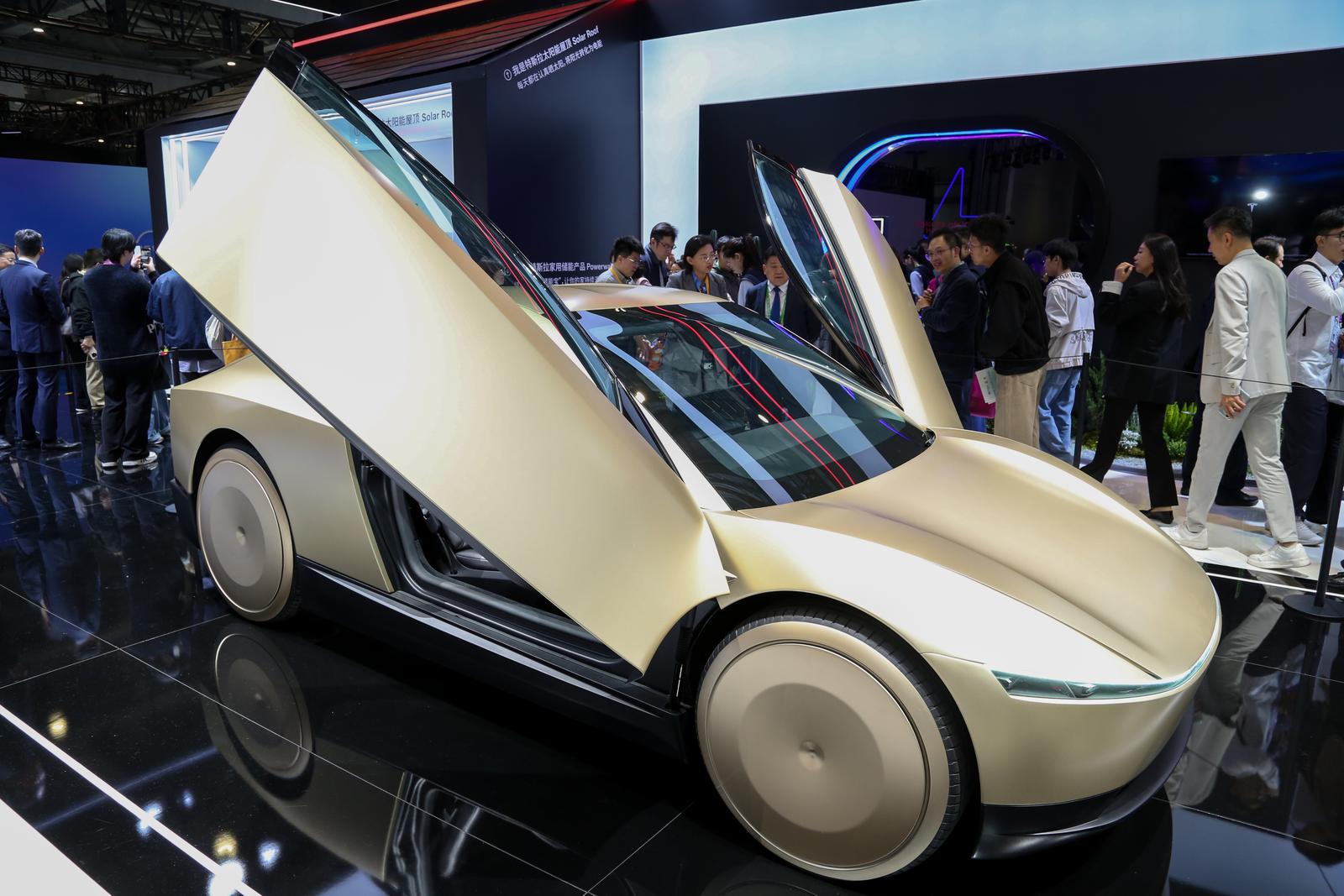 第八届中国国际进口博览会的现场,特斯拉展台前人流如织。来自云南的媒体、消费者们驻足于一辆金色流线型车身的概念车旁,这是特斯拉Cybercab赛博无人驾驶电动车的亚太首秀。