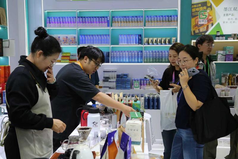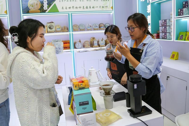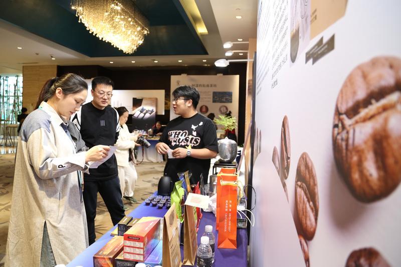 张杰所在的保山潞顶咖啡有限公司,是一家来自潞江坝产区的全产业链咖啡企业。该公司作为保山咖啡直播基地,汇聚了当地众多咖啡企业。他带来的蜜处理咖啡豆,带有果胶发酵的特殊风味,回甘明显、甜感突出,花香尤为浓郁。作为云南展区中“云咖”的代表企业之一,潞顶咖啡凭借云南小粒咖啡的独特风味,向全球客商展示着云南高原特色产业的魅力。