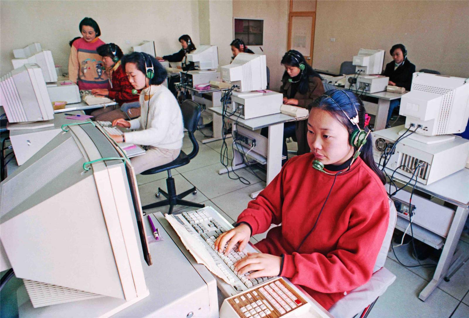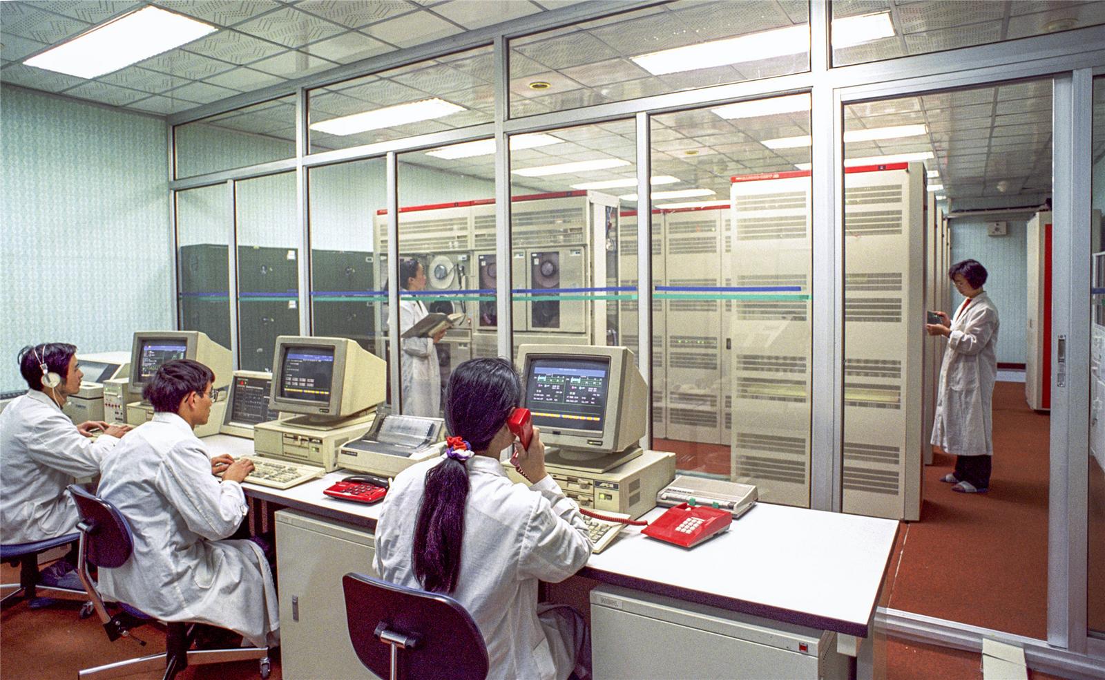 1992年,昆明市实现市话全网程控化。图为大楼内的程控电话机房。刘建明 摄