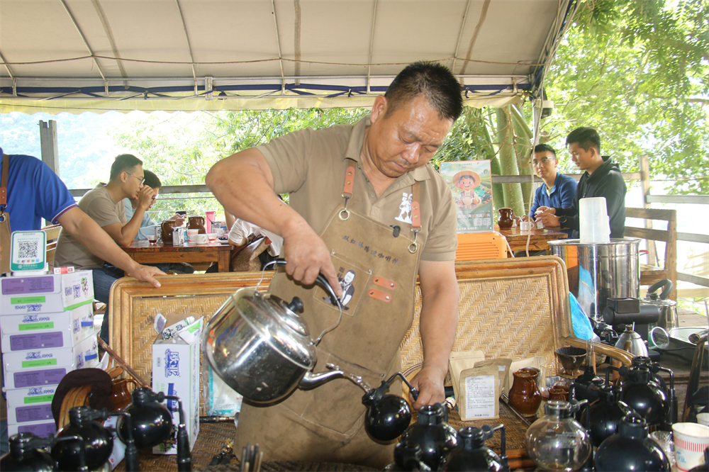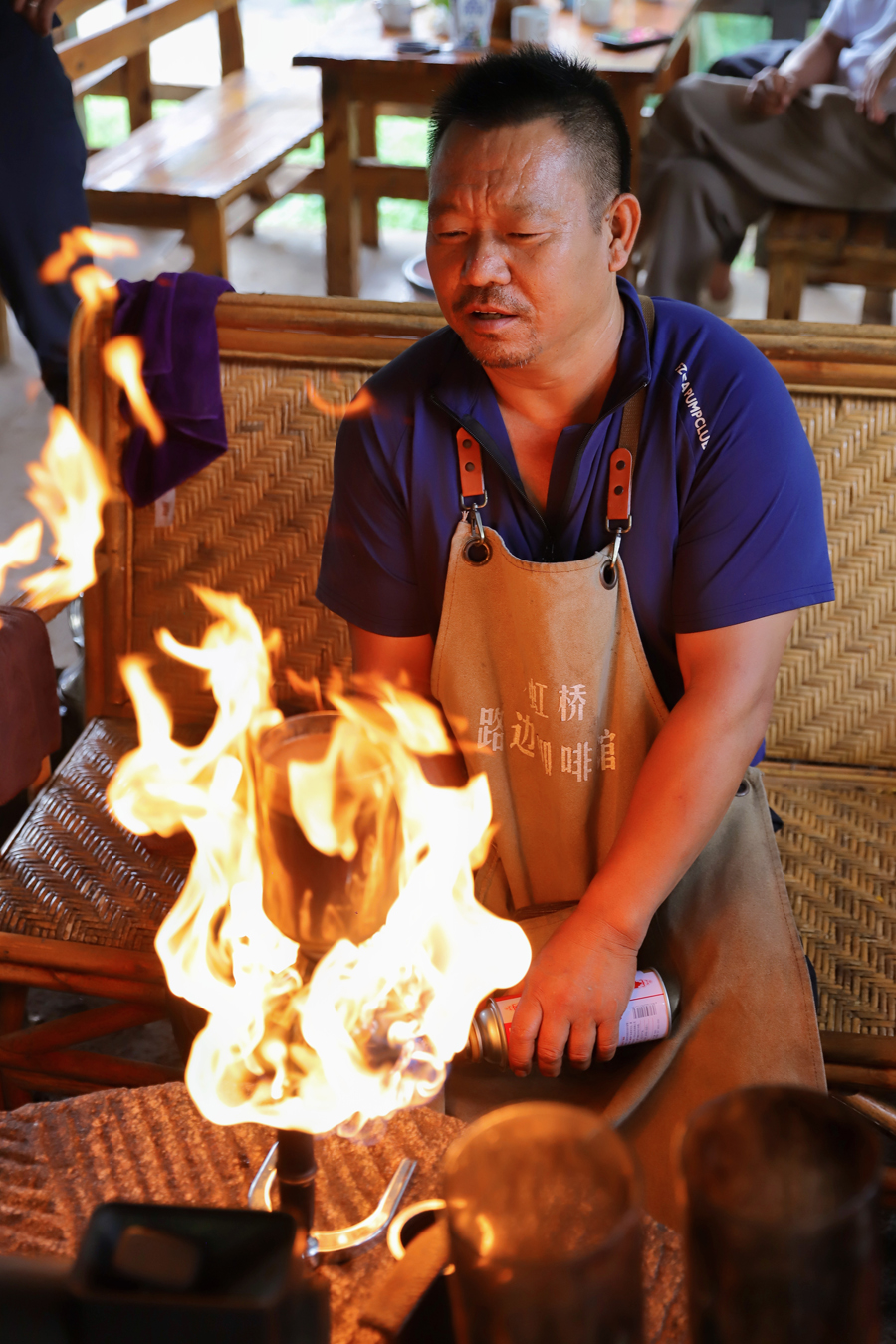 沿六曼公路行至双虹桥,人未至,香已迎。来自各地的游客举着手机,记录这难忘时刻。李金合手法娴熟,在升腾的热气中介绍:“我们的咖啡从种植到烘焙全由我完成,连调味所用的蜂蜜也采自自家蜂群,能充分释放咖啡的醇厚风味。”