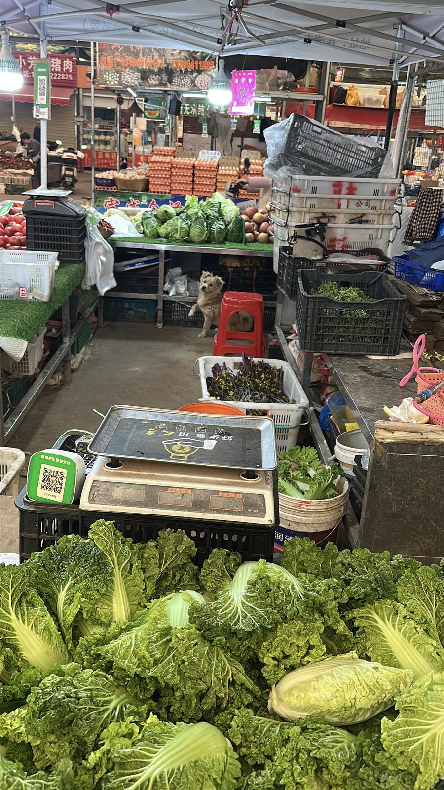记者沿集市通道逐一走访,仔细观察了每一个售卖乳制品、饮品的摊位,却并未发现网传视频中的“自助购奶”摊点。不过,走访过程中,摊主暂时离开的摊位倒是时有出现:某卖白菜的摊位,摊主不在现场,一筐筐新鲜的白菜整齐码放着,筐子上贴着红色纸条,标明“一筐两元”;另有蔬菜摊,由一只黄色小狗“值守”……每当有顾客驻足这些“无人摊位”,都会自觉选取商品并付款,整个过程有条不紊,没有丝毫犹豫。一位正在买白菜的阿姨告诉记者,“我经常来这里买东西,摊主不在很常见,大家都习惯了,不会少给钱的,都是街坊邻居,互相都信得过。”而在集市中段的一个菜摊前,记者还看到了有趣的一幕:摊主直接搬了一把躺椅放在摊位旁,盖着薄外套呼呼大睡,摊位上的蔬菜码放整齐,仅当有顾客询问,摊主才会睡眼惺忪地醒来应答。