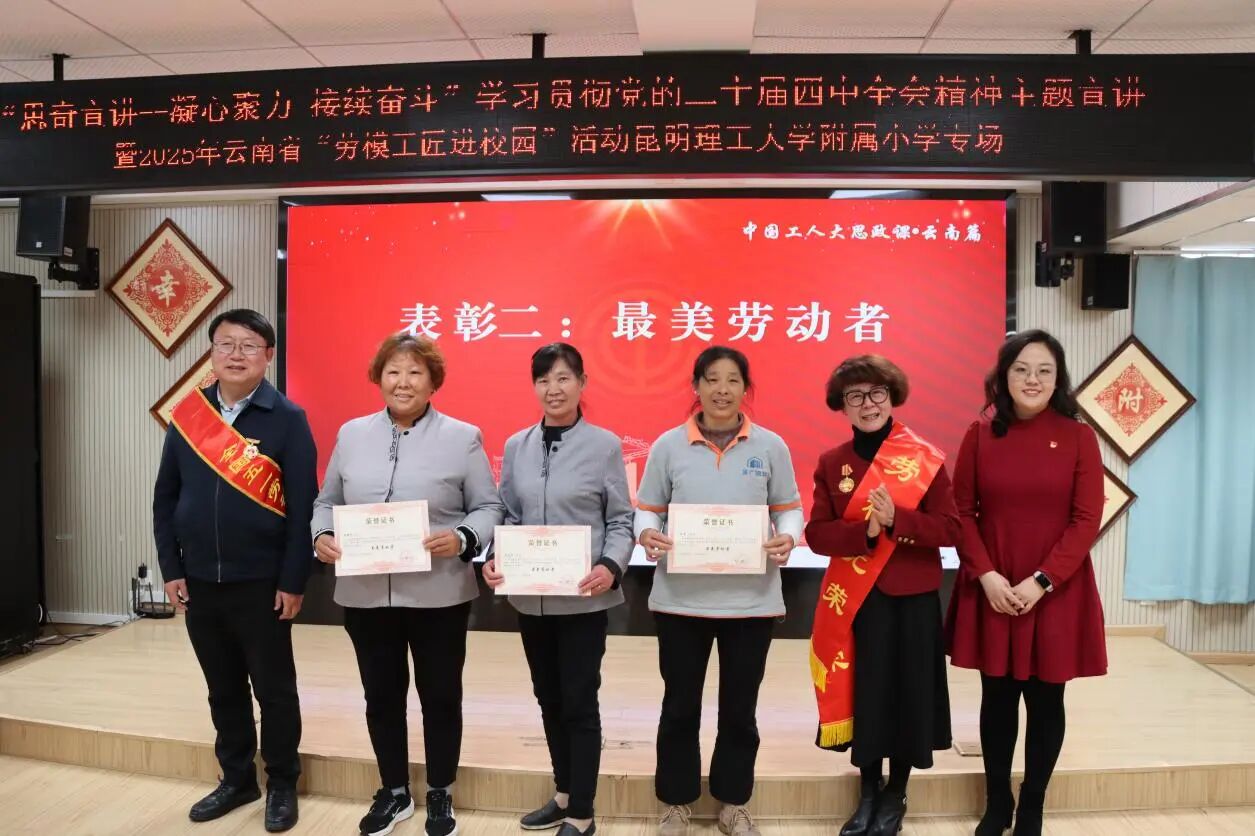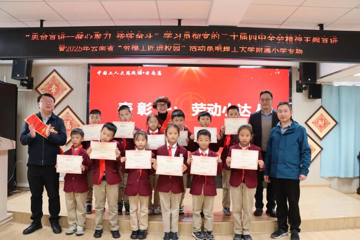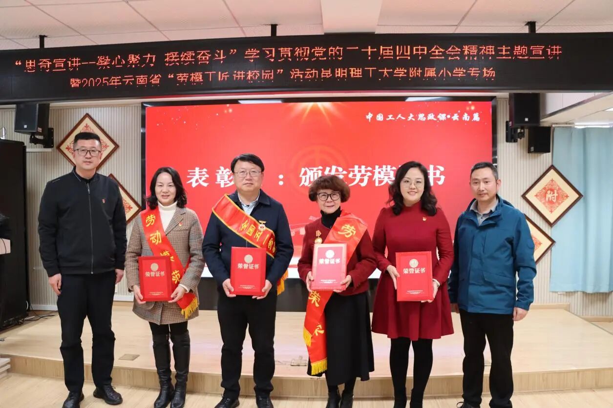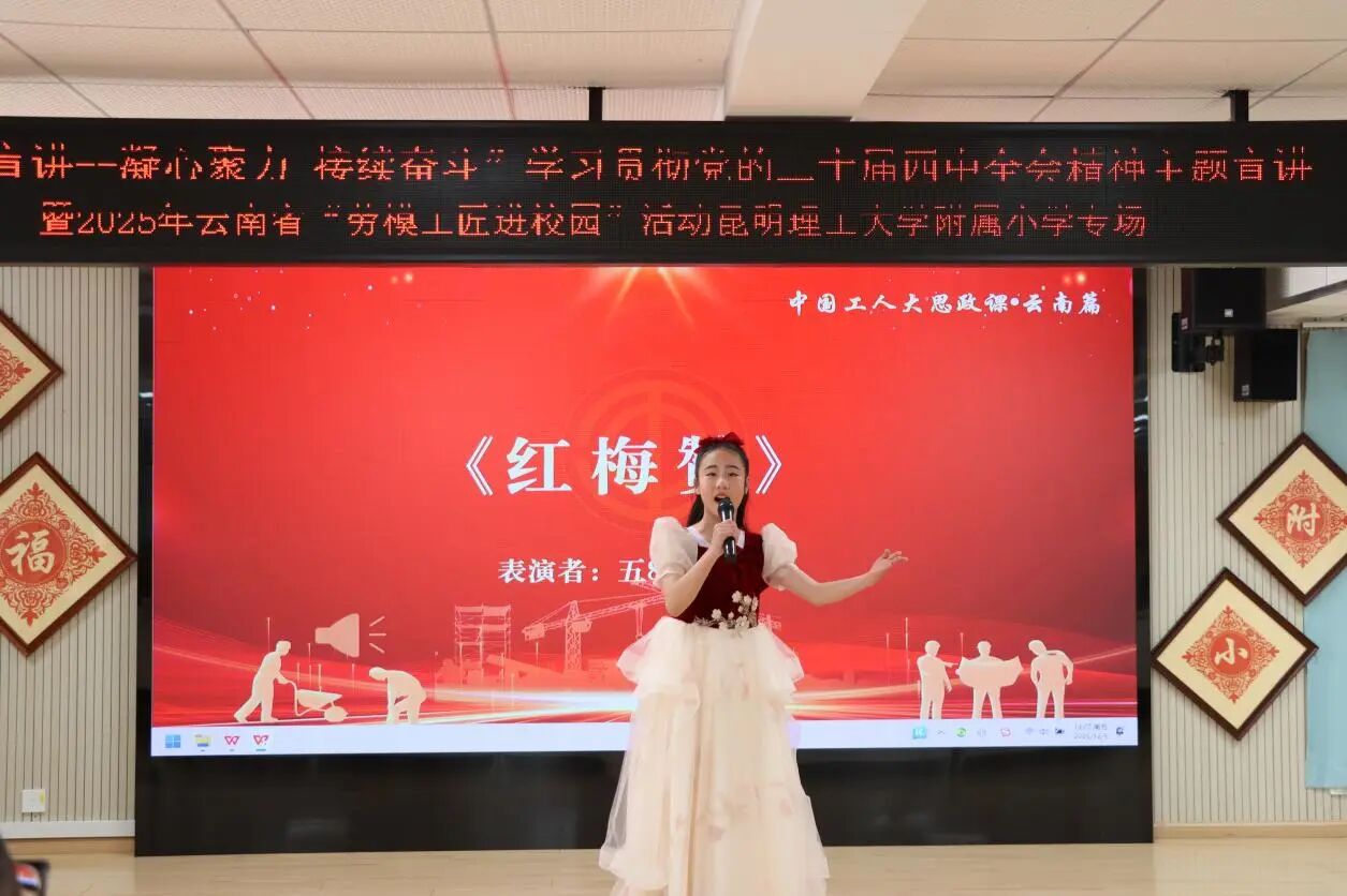 2025年12月5日,“思齐宣讲——凝心聚力 接续奋斗——学习贯彻党的二十届四中全会精神”主题宣讲暨云南省2025年“劳模工匠进校园”活动,在昆明理工大学附属小学教育集团莲华校区举行。活动由中共云南省委宣传部、云南省总工会联合主办,百余位师生和家长代表参与。
