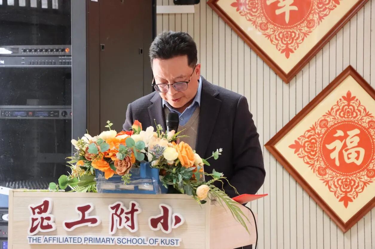昆明理工大学附属小学教育集团总校长、莲华校区党支部书记石梦媛首先致辞,向与会来宾、师生和家长代表表示欢迎。云南省教育卫生科研工会经审委主任、宣教部长普春昆随后致辞,表达了对教育系统教职工的敬意和对学生成长的期望,并希望通过此次活动进一步弘扬劳模精神、劳动精神和工匠精神,凝聚推动强国建设的力量。