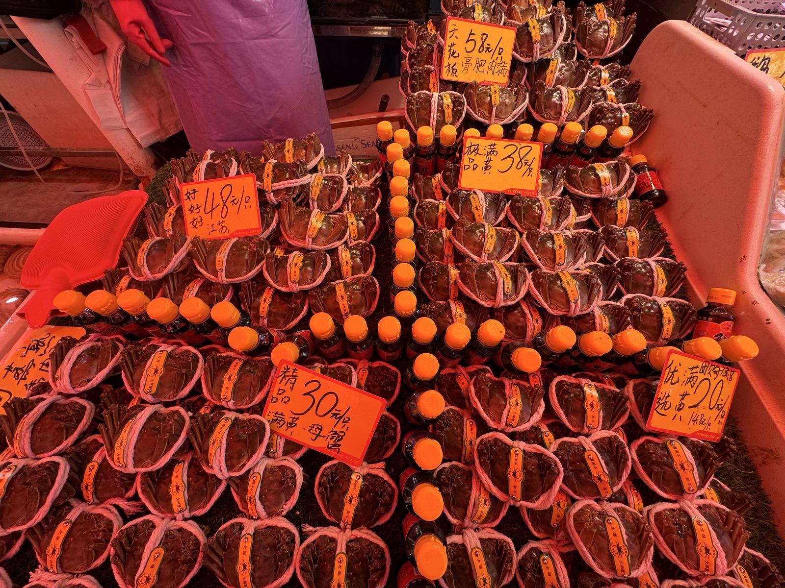 记者走访发现,多家水产摊位均将大闸蟹摆在核心位置,规格从2两到4.5两不等,满足不同的消费需求。商户李老板表示,进入12月后大闸蟹销量虽较旺季略有下降,但日均仍能卖出不少,周末甚至能翻倍。“现在母蟹、公蟹都有货,3两母蟹28元一只,4两公蟹35元一只,比10月份便宜不少。”家住附近的刘女士是这里的常客,从10月初购买至今,她表示:“没想到年底了还有这么肥的蟹,价格也很亲民,买回去清蒸给家人品尝。”