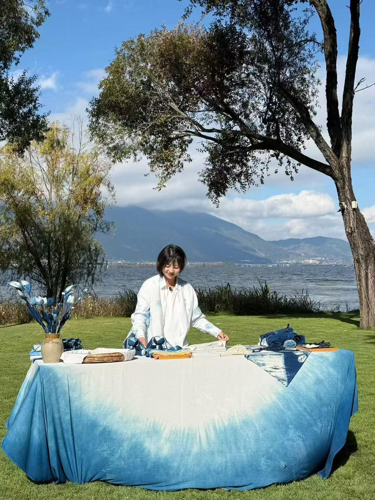 张翰敏在苍山洱海间展示扎染制作技艺