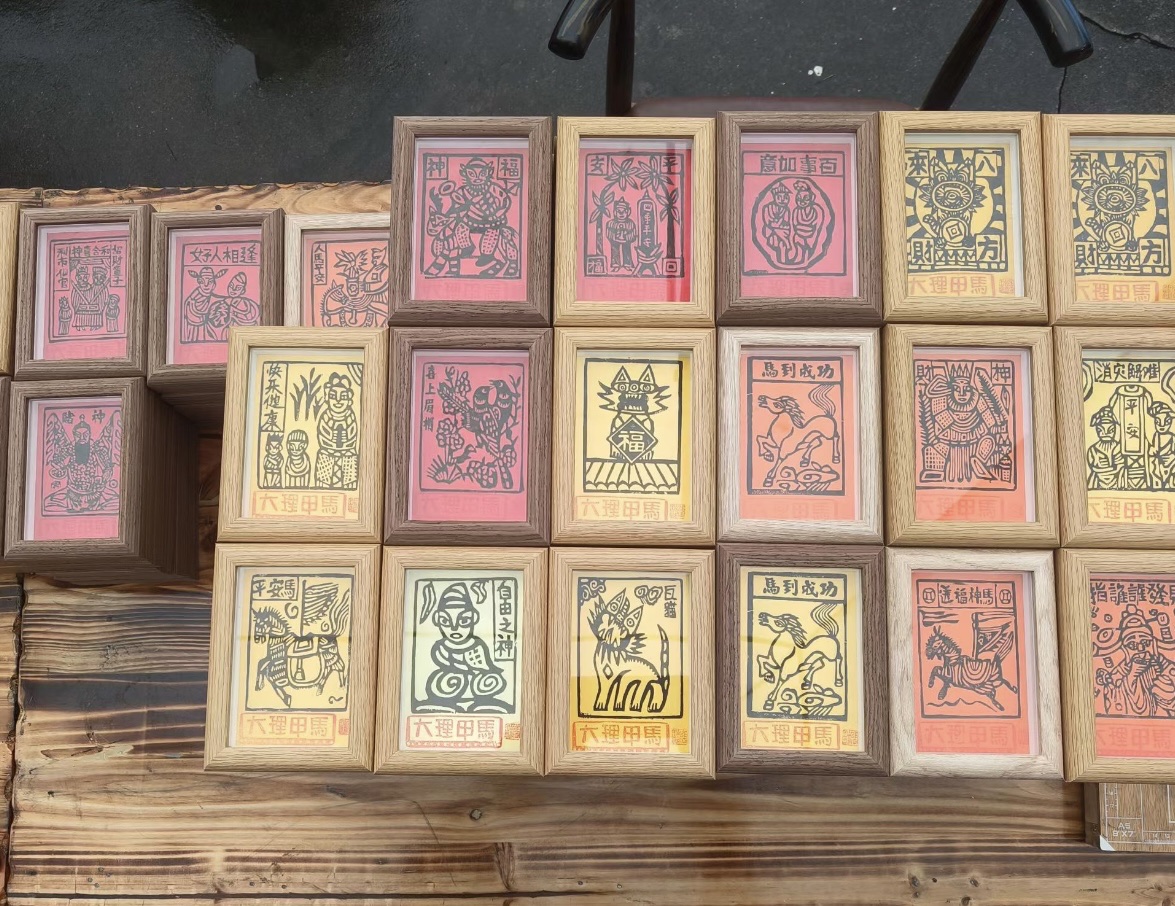 “来大理的人们要的不是走马观花,而是能扎根乡土的真实体验、能带走的可赏可玩的艺术摆件,甲马就得变成这样的东西。”张瑞龙每年都会新刻数百块版,灵感全来自实地见闻,“出去游玩看到好风景就拍下来,也做‘八方来财’‘干饭之神’这类年轻人喜欢的东西,静下心琢磨后刻成版,越来越多人喜欢,才能把有故事、有底蕴的东西传下去,”